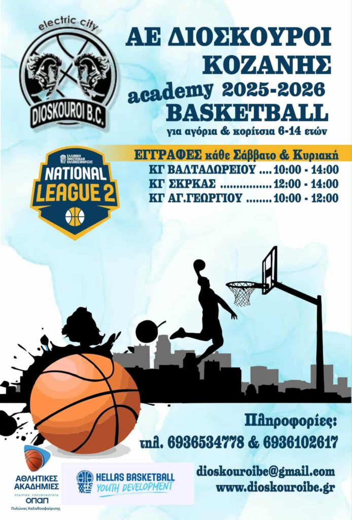 Εγγραφές θα γίνονται στα γήπεδα προπονήσεων (Σάββατο 10:00-14:00 και 17:00-19:00 στο Βαλταδώρειο και Κυριακή 10:00-12:00 στο κλειστό του Αγ. Γεωργίου, 12:00-14:00 στο κλειστό της Σκ΄ρκας) και μην ξεχνάτε στους Διόσκουρους όλα τα παιδιά των Ακαδημιών είναι ασφαλισμένα μέσω του Opap Academies.